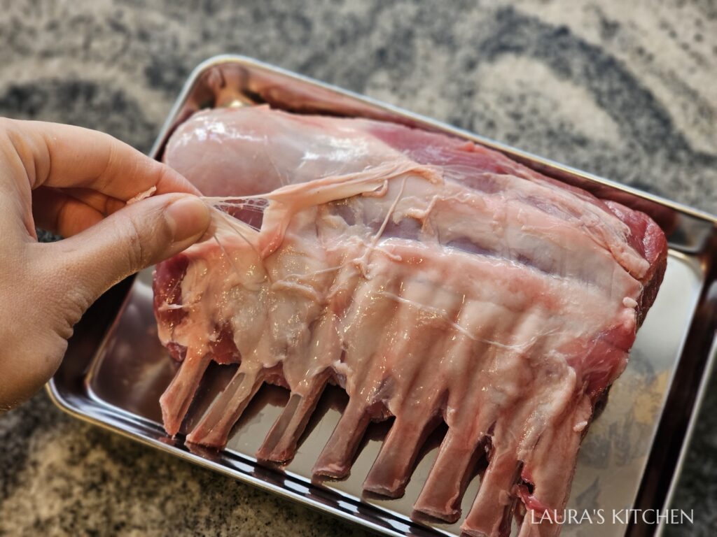 1.把羊排洗淨、擦乾,去除肋排背後的筋膜,會更好入味