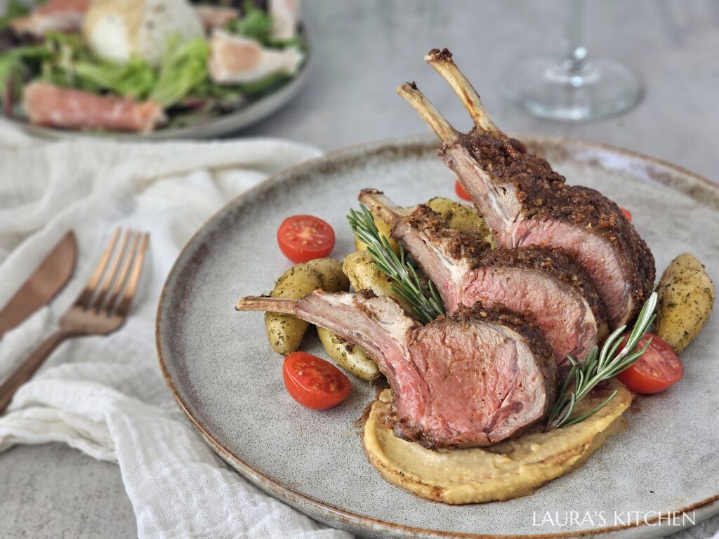 4. 烤好後馬上取出,用錫箔紙封住羊排,靜置15分。沿著肋骨間切開,就會看到完美的粉紅色切面,搭配馬鈴薯和蔬菜一起享用,就是簡單又美味的大餐囉!
