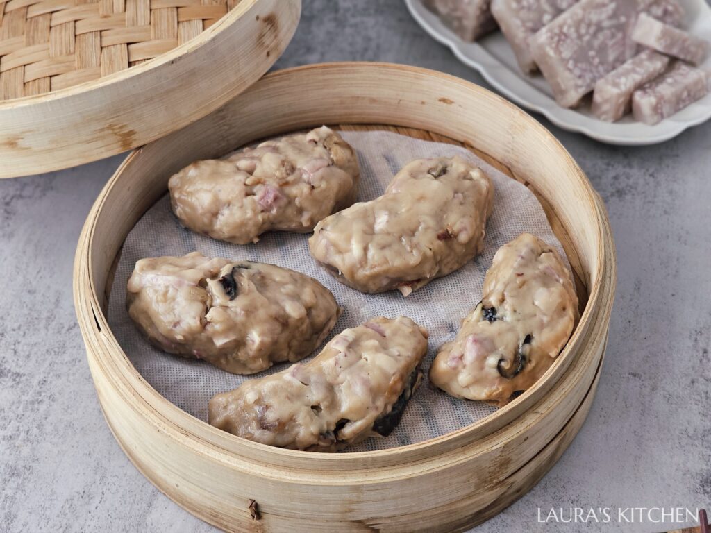 5. 外鍋放入1.5杯水,蒸到電鍋跳起,用爐子蒸的話大火20~25分,香噴噴的芋粿巧就完成囉! 芋粿巧的保存: 蒸好放涼後,裝入密封袋,放入冷藏(三天)或冷凍保存(三週)