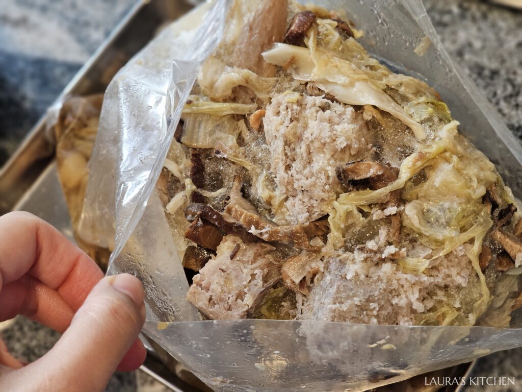 擺盤秘訣: 放在內附的油紙進去蒸,才不會黏住盤子(苦主在此)。如果因為上桌太久變乾,再去微波一下就變軟糯囉!