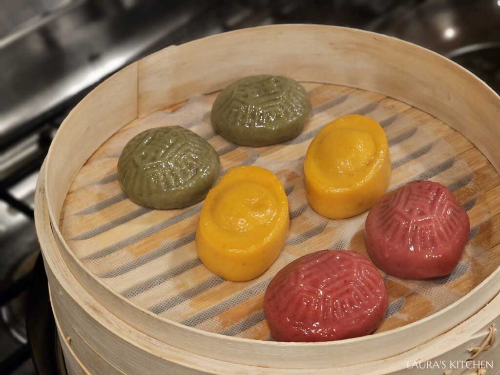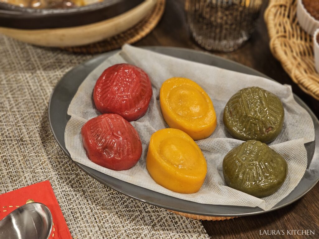 吃完了澎派的大餐,本來大家已經飽到喉嚨,直到有人吃了第一口粿,直喊驚為天人哪!! 草仔粿裡包的是紅豆餡,金元寶包紅心地瓜泥,紅龜粿包的是花生餡,三款我覺得都非常好吃! 特別激推金元寶,黃色外皮根本是地瓜圓的口感,QQ的無敵好吃! 三款粿做成一口輕食大小,飯後享用也不會有負擔 (會想回購!)