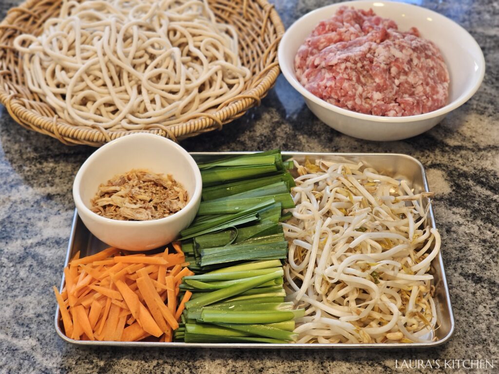 為了百分百還原,我特地做了新鮮圓麵條,來模擬油麵QQ的口感,台中炒麵特別的是要用「拌」的、而不是用「炒」的! 另外我還特地買了豬血(在美國第一次),用媽媽教我的方法,煮了一大鍋大腸豬血湯。這頓早餐吃得實在是有夠滿意,嗝~