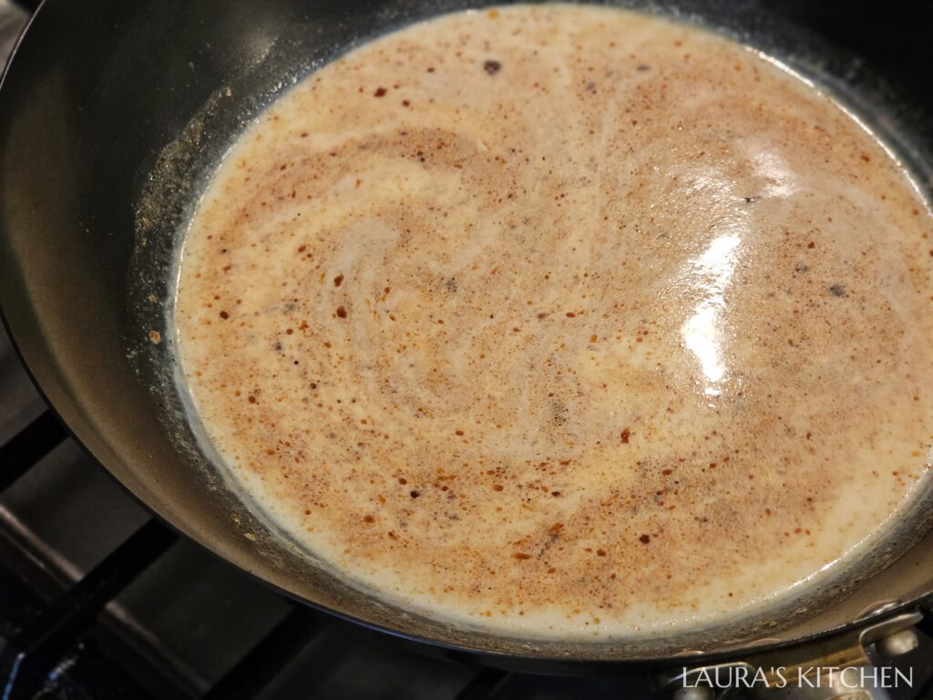 6.沙茶牛奶湯頭: 挖一匙沙茶醬,下鍋小火炒香(火太大容易焦)。倒入鮮奶、豬肉高湯,用鹽、柴魚粉調味,是的牛奶湯頭就是這麼的簡單。再燙個麵條,把麵條、叉燒、溏心蛋、玉米粒依序排入碗中,倒入牛奶湯頭,最後放上蔥絲,這碗日式叉燒拉麵就總算大功告成啦!