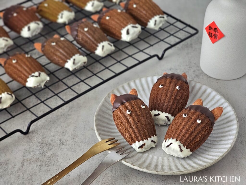 過年前的廚房,突然出現萬馬奔騰的場景! 這可是馬年最流行的甜點,原本優雅的經典法式小蛋糕 — 瑪德蓮,被改造成一匹匹帥氣小馬,讓人看了忍不住會心一笑! 只是我想問,為什麼別人做的都很可愛,我做的都有一股厭世感阿 (難道是因為作者?)!