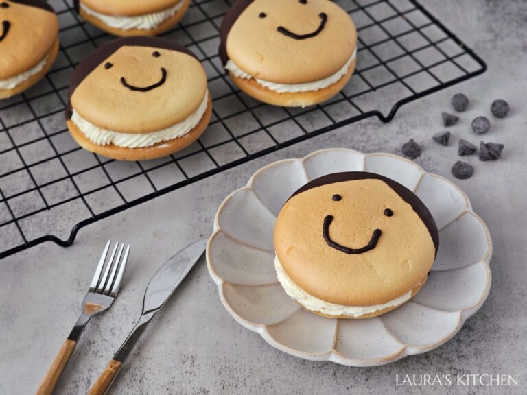 小時候跟媽媽去麵包店,除了我最愛的香蒜麵包之外,還有一款小點心也是我的心頭好——一顆有著可愛笑臉的夾心小蛋糕。 …